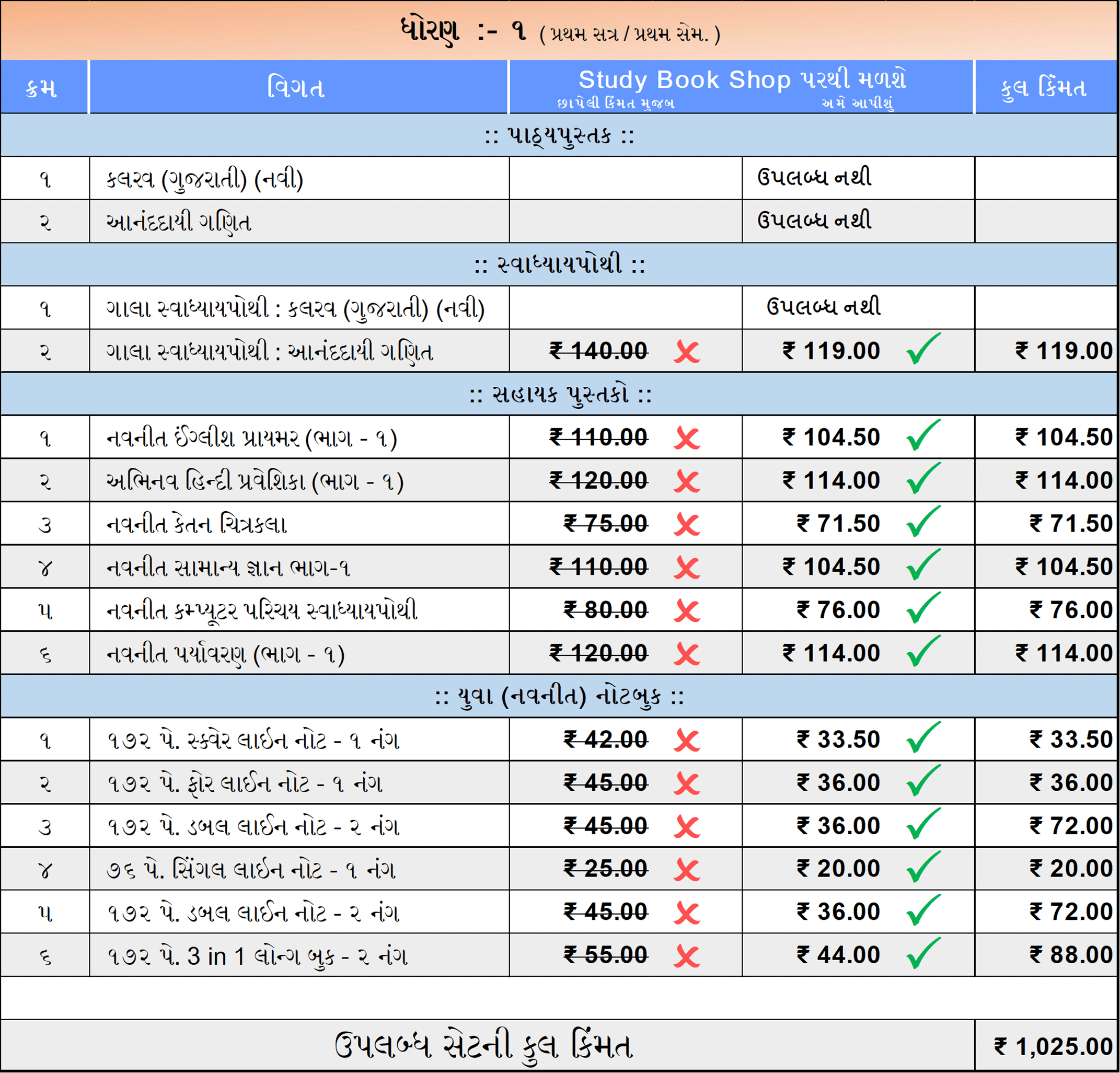 ધોરણ – ૧ ( સોરઠ – ગુજરાતી માધ્યમ )