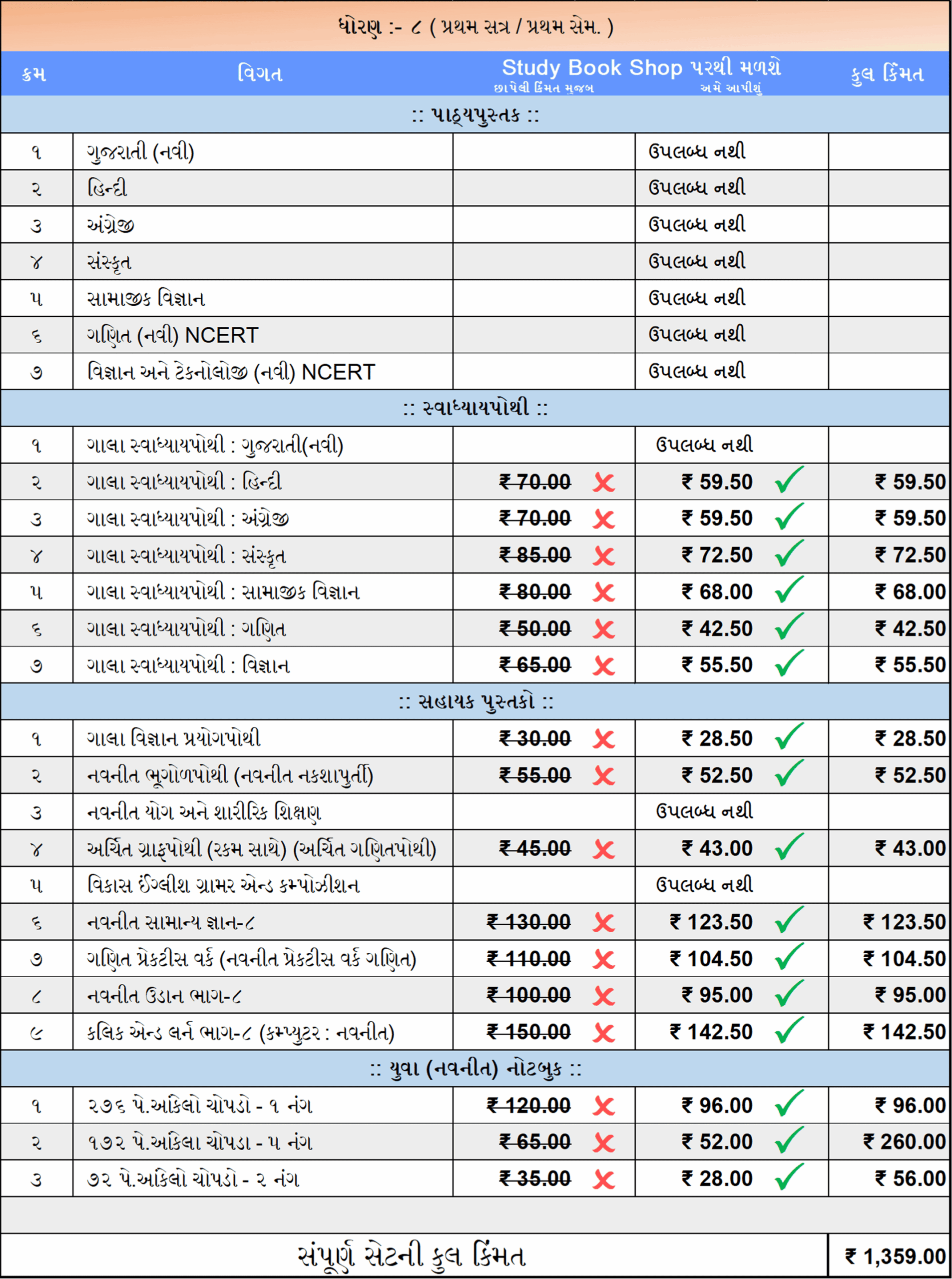 ધોરણ – ૮ ( નોબલ – ગુજરાતી માધ્યમ )